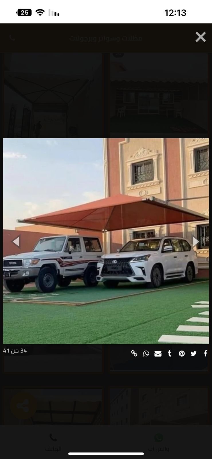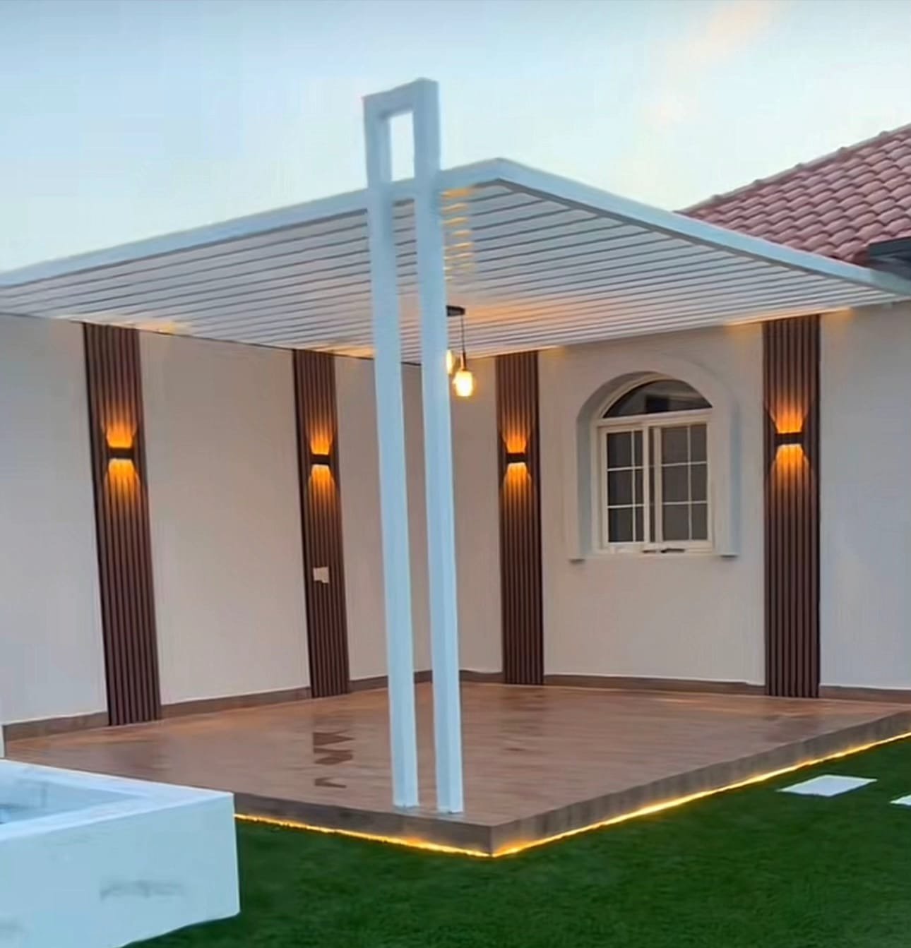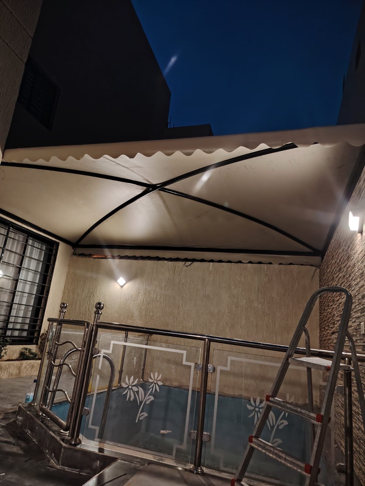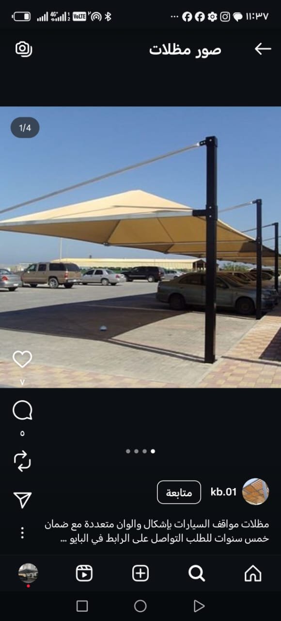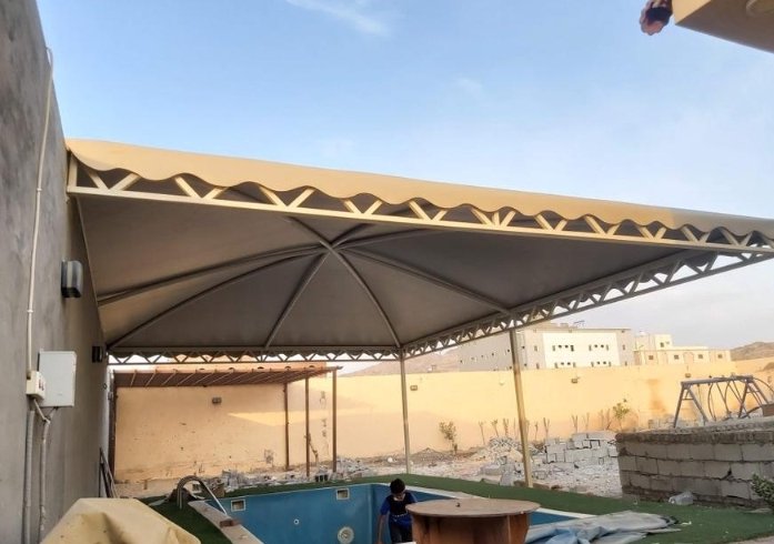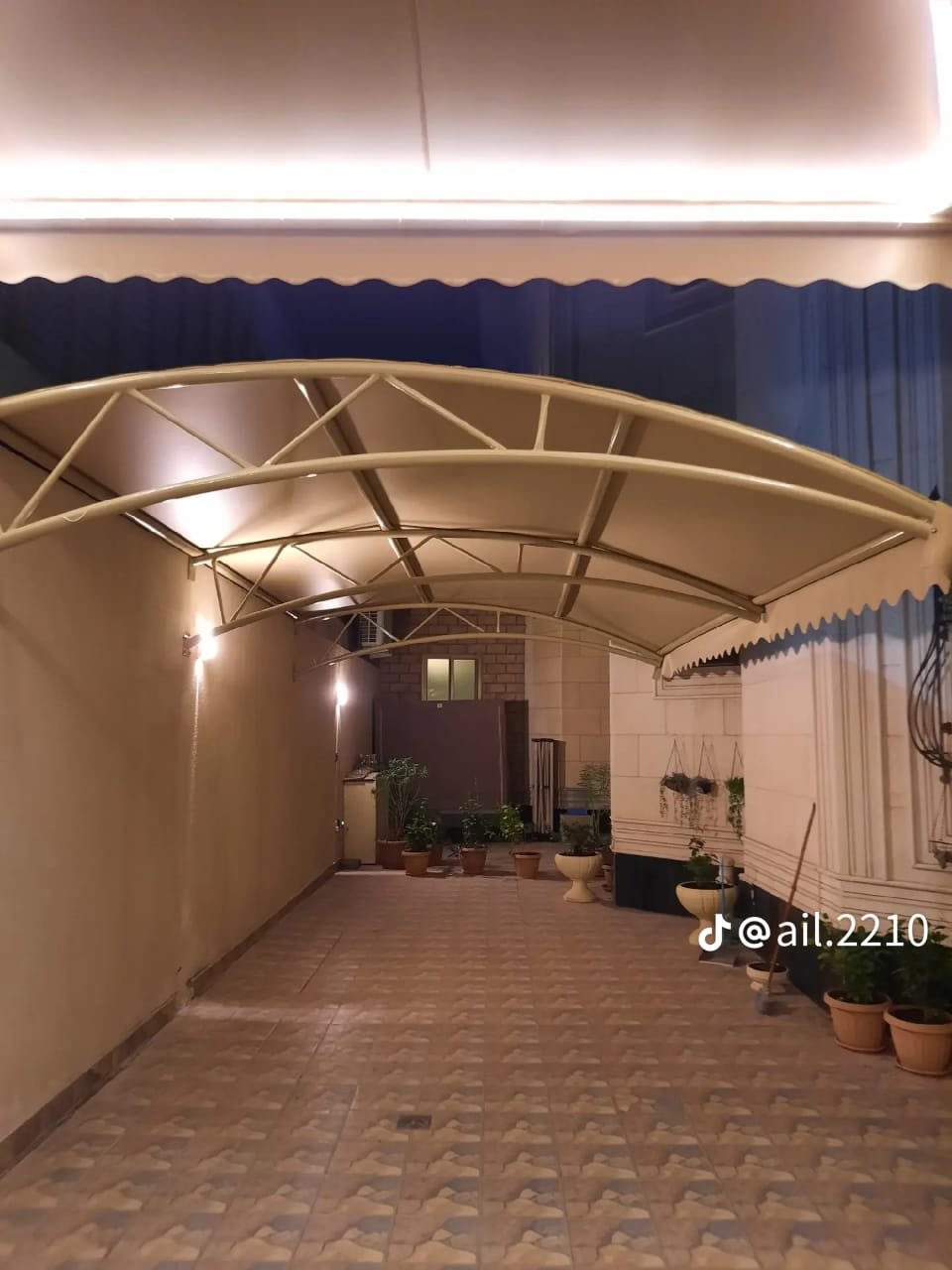 تعكس صور المعرض خبرتنا الطويلة في تنفيذ مختلف أنواع المظلات والسواتر للمنازل، الفلل، المساجد، المدارس، والمشاريع التجارية، باستخدام أفضل الخامات المقاومة للشمس والعوامل الجوية، مع تشطيب دقيق يضمن عمرًا افتراضيًا طويلًا.